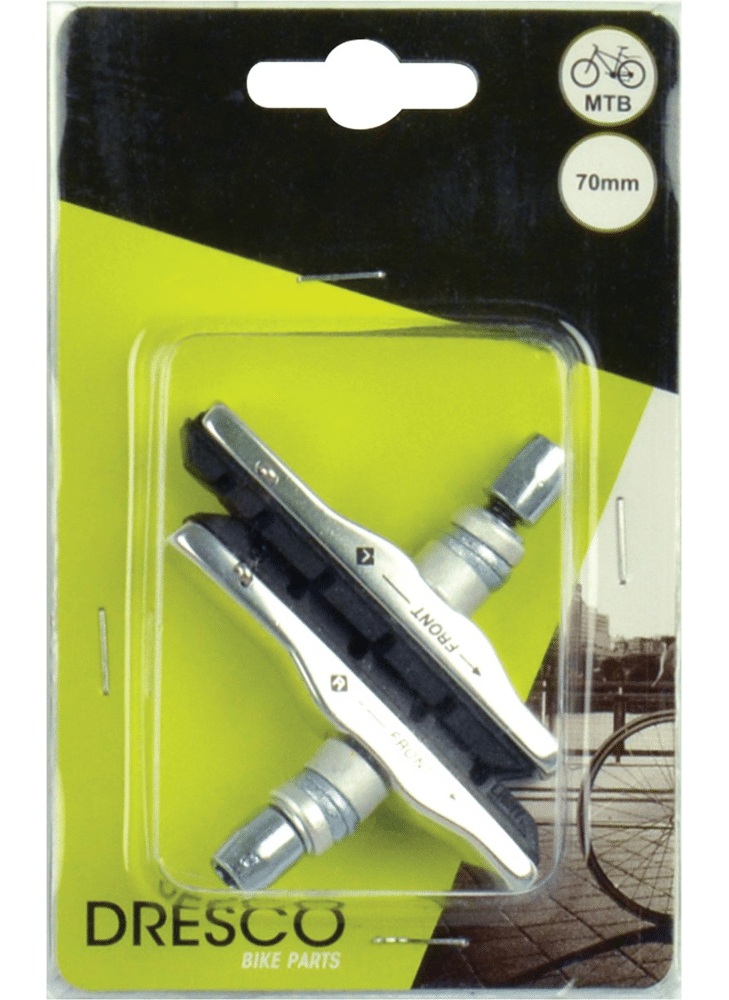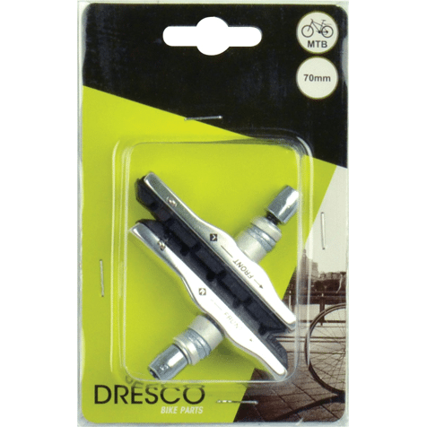 Deze Dresco remblokken zijn geschikt voor fietsen die zijn uitgerust met een V-Brake Cartridge remmen, deze komen vaak voor op mountainbikes of sportieve fietsen. De remschoenen zijn geschikt voor de voor- of achterrem en hebben goede remkracht in droge en natte weersomstandigheden. De remblokken hebben een lengte van 70mm en worden per twee stuks geleverd.