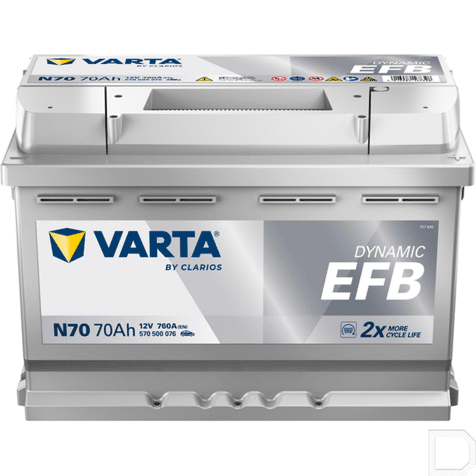 De VARTA® Dynamic EFB is geschikt voor start-stopsystemen op instapniveau en is meestal uitgerust met een EFB (Enhanced Flooded Battery). De Dynamic EFB is geschikt voor voertuigen met een hogere energiebehoefte dan normaal.