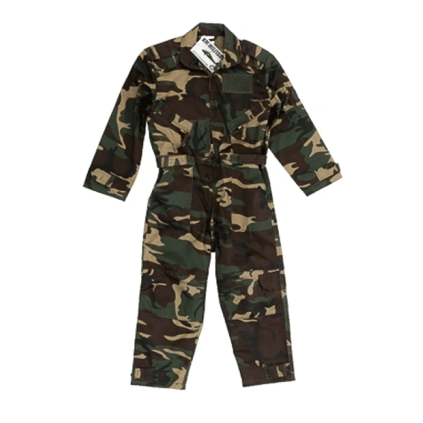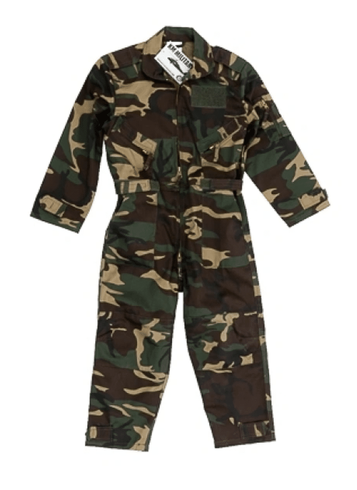 Junoir Camouflage Piloten overall met klittenband patch om eigen batch te bevestigen.