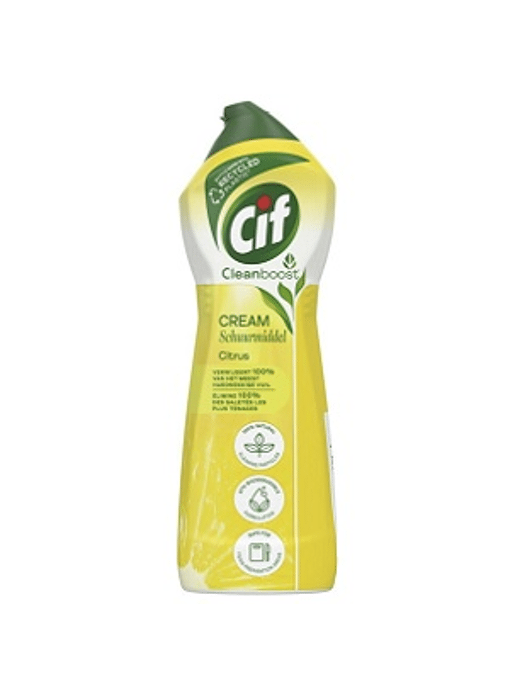 Cif CleanBoost Cream Citroen Schuurmiddel met 100% natuurlijke schuurbestanddelen verwijdert zonder schade het meest hardnekkige vuil.