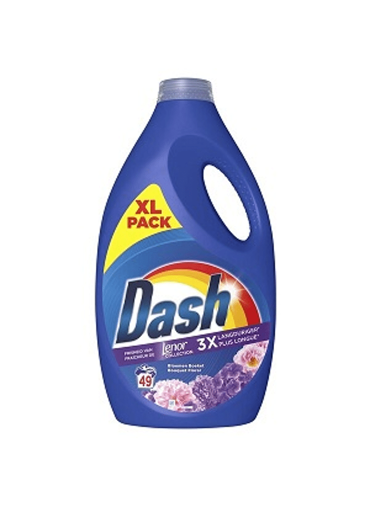 Met Dash Bloemen Boeket Vloeibaar Wasmiddel blijft je was tot wel drie keer langer fris met een heerlijke bloemengeur. Het wasmiddel is goed voor 49 wasbeurten.