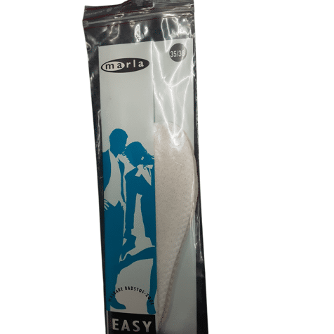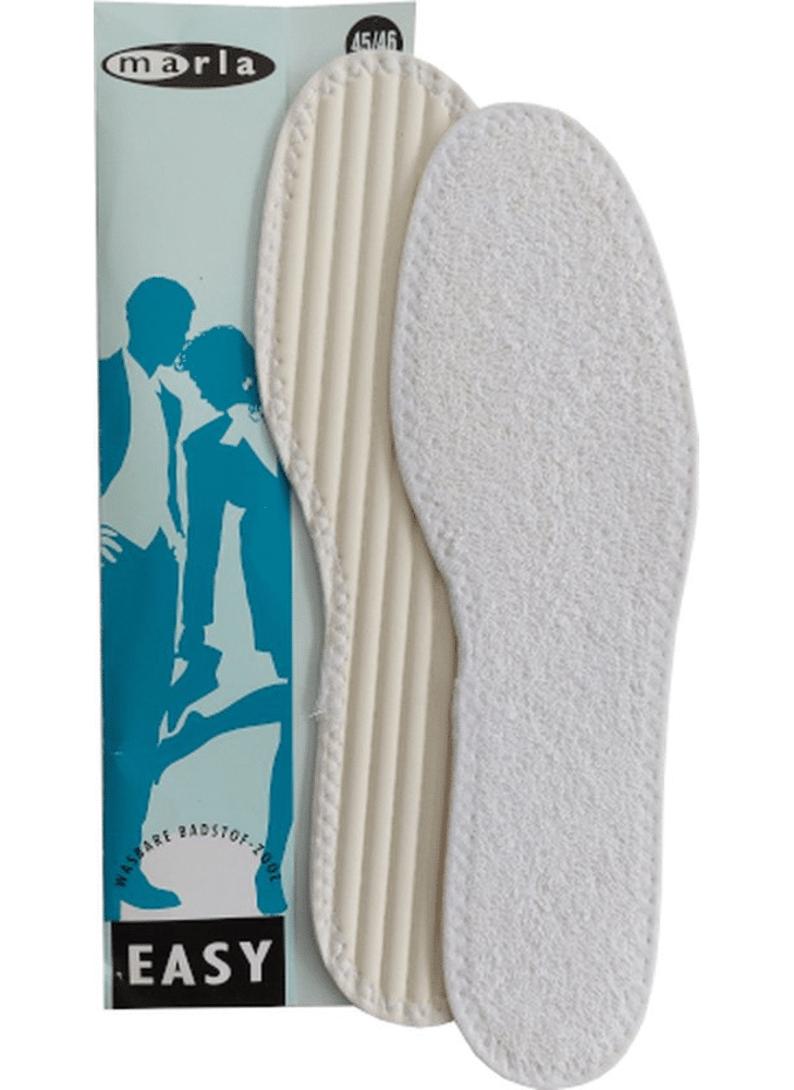 Marla Easy Badstof InlegzoolDe Marla Easy badstof inlegzool is een hygiënische vochtopnemende zomerzool van witte katoenen badstof. De onderzijde bestaat latex-schuim en is voorzien van een ribbelprofiel voor een optimaal loopcomfort.