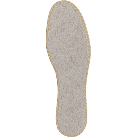 Deze zachte badstof inlegzool voorkomt onaangename geurtjes en is een heerlijke zool voor warme dagen in de lente en zomer. Kan ook blootsvoets gedragen worden.