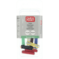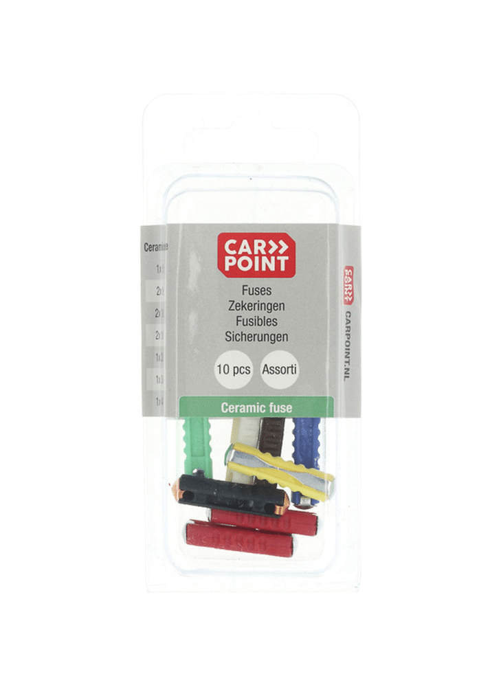 Carpoint assortiment verpakking met 10 verschillende steenzekeringen. De set bestaat uit de volgende kleuren en amperage steenzekeringen met 1 gele 5A, 4 witte 8A, 2 bruine 10A, 3 rode 16A, 1 blauwe 25A en 1 zwarte 40 ampère zekering. Vervang een kapotte steenzekering altijd voor een zekering met dezelfde kleur en amperage. De zekeringen worden geleverd in een blisterverpakking.