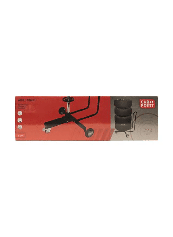 Carpoint aluminium verrijdbare velgenstandaard voor het veilig en schoon opslaan van velgen met zomer- of winterbanden. Geschikt voor alle gangbare autovelgen met een maximale diameter van velg en band tot 820mm en een bandbreedte van 265mm. Zwevende opslag voorkomt vervorming door drukverlies. Inclusief handige bandenhoes.