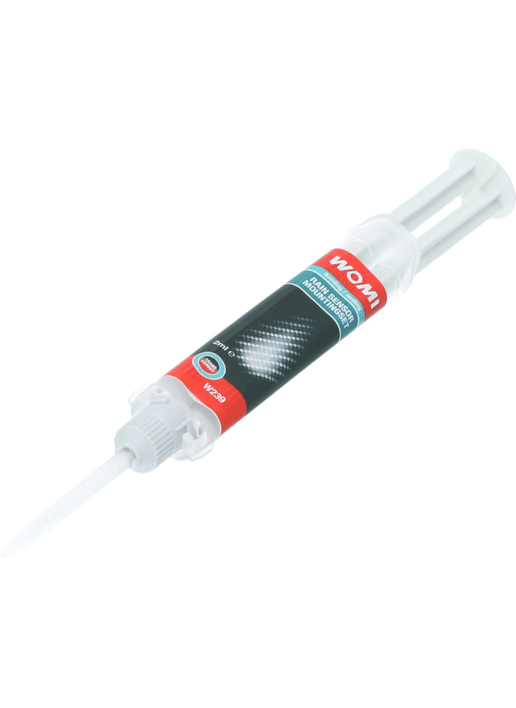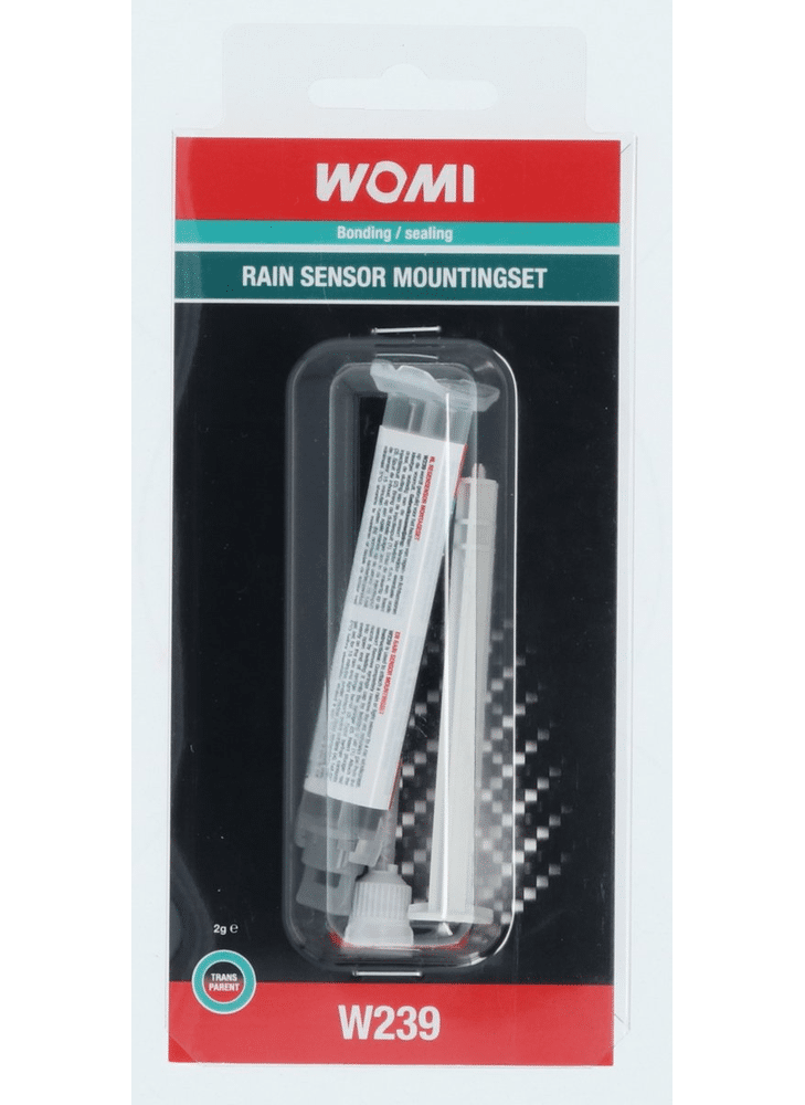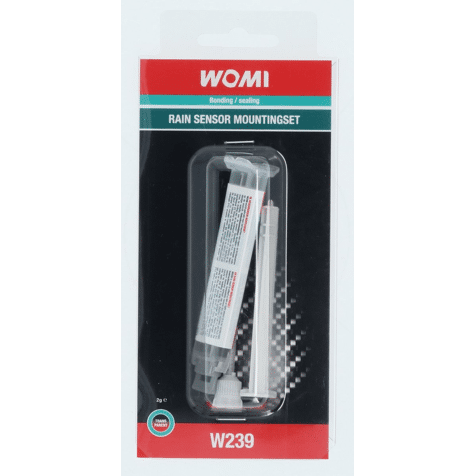 Womi W239 wordt gebruikt om een regen- of lichtsensoren op de voorruit van een auto te bevestigen. De Womi gel heeft een uitstekende hechtende werking. Let op: voor een goede hechting van het oppervlakte van de sensor moet deze ontvet, droog en vrij van onzuiverheden zijn. Deze montage set bestaat uit een mengmondstuk, injectiespuit met 2 gram kleefcomponenten en een dubbele zuiger.